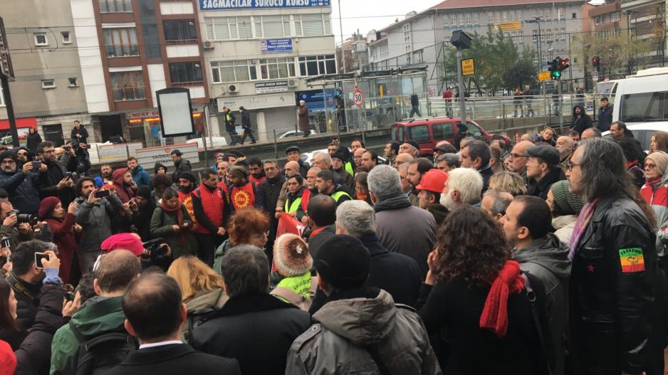 3. Havalimanı işçilerinin, şantiyedeki insanlık dışı çalışma koşullarını protesto etmek ve taleplerini dile getirmek için yaptıkları eyleme ilişkin davanın ilk duruşması bugün (5 Aralık) görüldü. İstanbul Gaziosmanpaşa 14. Asliye Ceza Mahkemesi’nin baktığı dava sanık sayısının fazla olması ve tutuklu sanıkların da bulunması nedeniyle adliye yemekhanesinde gerçekleşti. Yargılama koşullarının da en az işçilerin çalışma koşulları kadar kötü olduğu duruşmaya sendika ve çeşitli siyasi partilerin avukatlarının yanı sıra Devrimci İşçi Partili avukatlar da katıldı. Duruşmaya seyirci olarak işçilerin yakınları ve milletvekilleri de katıldı.