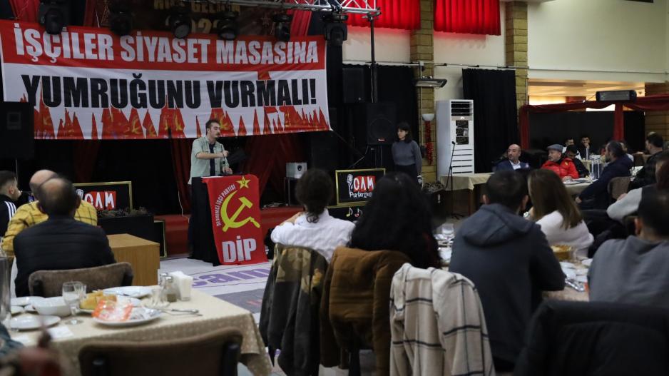 İlk sözü alan Devrimci İşçi Partisi Genel Başkan Yardımcısı Levent Dölek, istibdadın yalanlarına, yasaklarına, kardeş kavgası kışkırtmasına karşı memlekete hürriyeti, eşitliği, barışı getirecek olanın, sözde hürriyet sevdalısı sermaye muhalefeti değil işçi sınıfının kendi siyaseti olacağını anlattı. Emperyalist çıkarlar için kardeş kavgasını körükleyen, emekçileri her defasında bölen, kendi siyasi bekası için emekçilerin alın terini çarçur eden iktidarıyla muhalefetiyle düzen siyasetine karşı ülkenin bağımsızlığını da halkların kardeşliğini de kazanacak olanın “Yaşasın işçilerin birliği, halkların kardeşliği” diyen işçi sınıfının siyaseti olacağını söyledi. İşçi sınıfının gücünün bir oy pusulasından çok daha fazla olduğunu, işçilerin birleştikleri zaman istedikleri her şeyi alabileceklerini, bunun da ancak düzenin kuralları belirlediği seçimle sınırlı kalarak değil, işçi sınıfının kendi mücadele yöntemleriyle olabileceğini anlattı.
