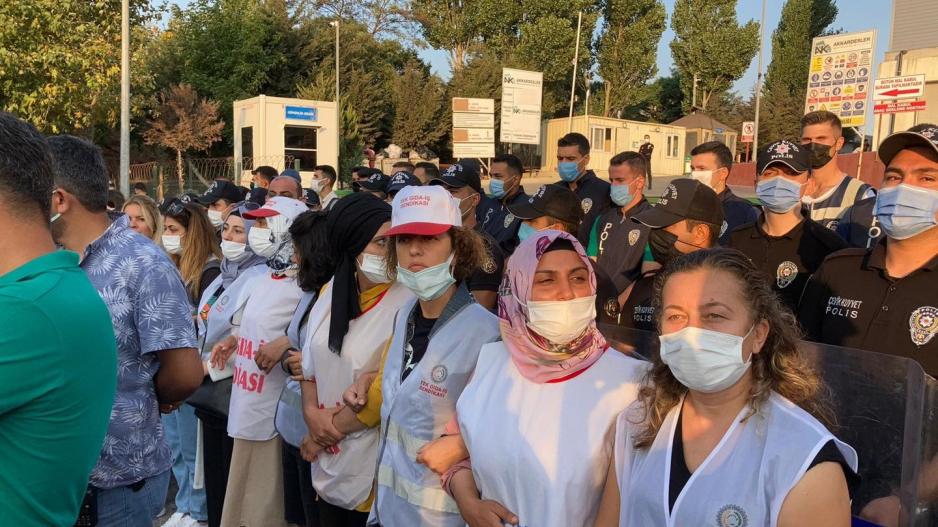 Indomie Adkoturk işçilerinin örgütlü olduğu yetkili sendika Tek Gıda-İş’in yönetici ve temsilcilerinin fabrika içinde işçilere bilgilendirme yapmasına, fabrika önünde barikat kurarak engel olan polis, servislerin doğrudan fabrika içine sokulması ve grevcilerle temas etmemesi için işçilere saldırmaktan çekinmedi. Üstelik bu servislerin şoförlerine günler öncesinden patronlar tarafından servis kapılarını açmamaları için baskı ve tehdit uygulanmış, grev sabahı ise Tek Gıda-İş üyesi işçiler servislere alınmamıştı. Patronun ve polisin tam teşekküllü grev kırıcılığına rağmen pek çok işçi grev alanında yerini aldı. Özellikle kadın işçiler polislerin önünde zincir oluşturarak, işçilere yapılan baskının önüne geçmek için kahramanca direndiler.