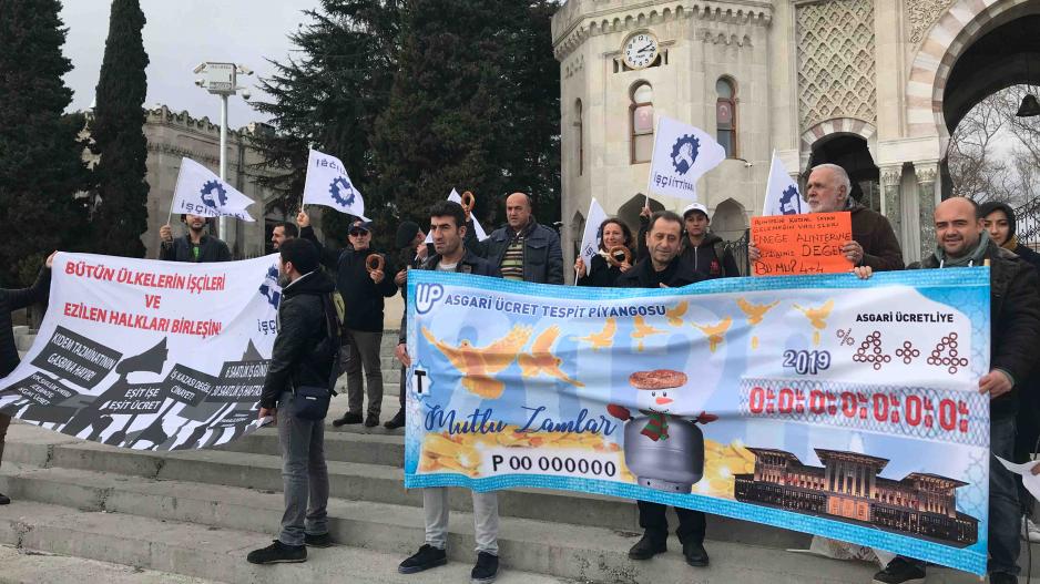 22 Aralık Pazar günü çeşitli sektörlerden çalışanlar, Asgari Ücret Tespit Komisyonu'nun işleyişini teşhir etmek için Beyazıt Meydanı’ndaydı. İşçi İttifakı adıyla toplanan işçiler, basın açıklamasından önce bir mizansen gerçekleştirerek, her sene sonu hükümet-patron-sendika üçlüsünün bir araya gelerek görüştüğü ama her seferinde işçinin değil patronun istediği asgari ücretin belirlendiği komisyonu konu aldılar.