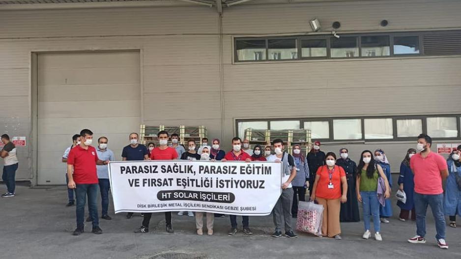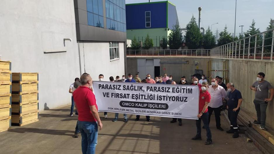 Birleşik Metal-İş Gebze 1 No’lu Şubesi bugün örgütlü olduğu 14 fabrikada pankartları ve sloganlarıyla “parasız sağlık, parasız eğitim, fırsat eşitliği istiyoruz” şiarıyla eylemler gerçekleştirdi.