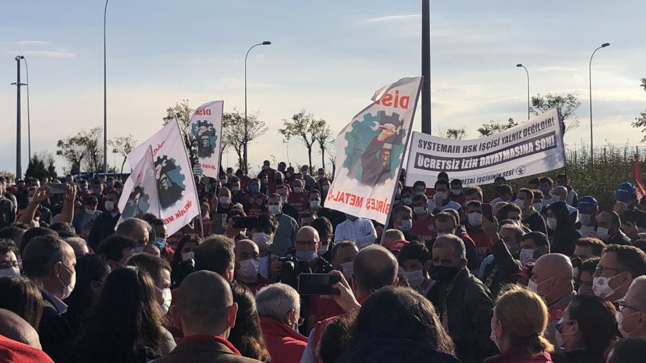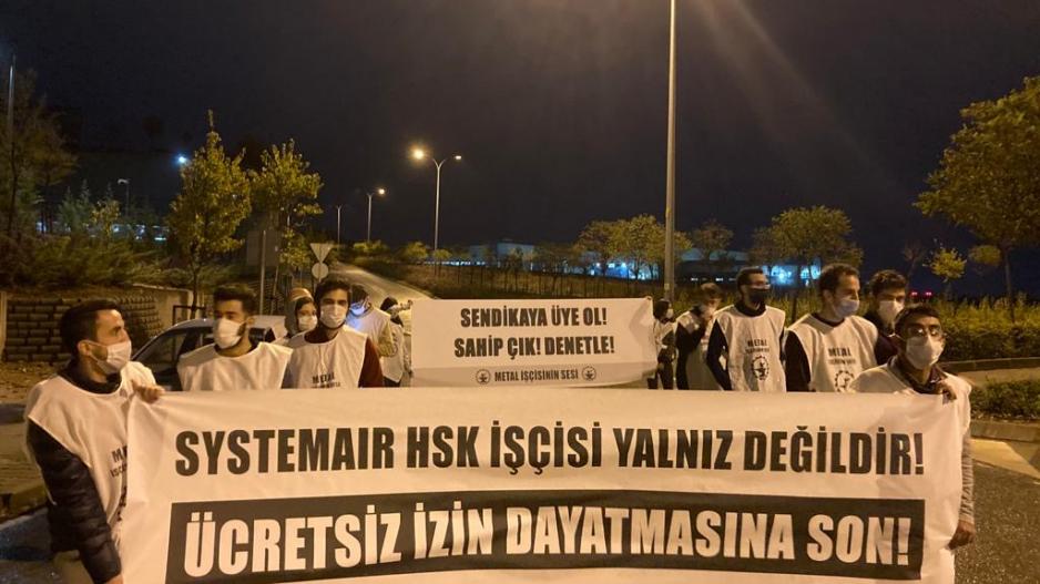 Kocaeli Dilovası İMES’te bulunan İsveç ve Türk sermayeli Systemair HSK fabrikası, patronun saldırılarına karşı işçilerin direnişine sahne oluyor. Önce şirket yönetimi salgını fırsat bilerek daha önce söz verdiği ücret zammını erteleyip işçileri düşük ücretlere mahkûm etti. Salgın dönemi boyunca sokağa çıkma yasaklarında dahi işçileri çalıştırarak kârına kâr kattı. Altı ay sonra ise kişi kişi farklı oranlarda ve beklenenin çok altında bir zamla işçilerin karşısına çıktı. İşçiler sadece düşük ücretlere değil aynı zamanda gördükleri bu muameleye karşı örgütlenme yolunu seçti. Kısa sürede Birleşik Metal-İş Gebze Şubesi (1 no.lu) ile fabrikada yeterli çoğunluğu sağladı ve yetki için Çalışma Bakanlığı’na başvuru yapıldı. Çalışma Bakanlığının resmi yetki belgesi fabrikaya ulaşır ulaşmaz ise patron derhal saldırıya geçti. 46 işçiyi ücretsiz izine çıkararak, iki işçiyi de ücretsiz izne çıkan arkadaşlarının direnişine destek verdikleri için iftiralarla işten çıkararak sendikal örgütlülüğü kırmaya çalıştı. Bu saldırıya karşı işçiler fabrikanın önünde ekmek ve hürriyet için 19 Ekim’den beri direnişteler!