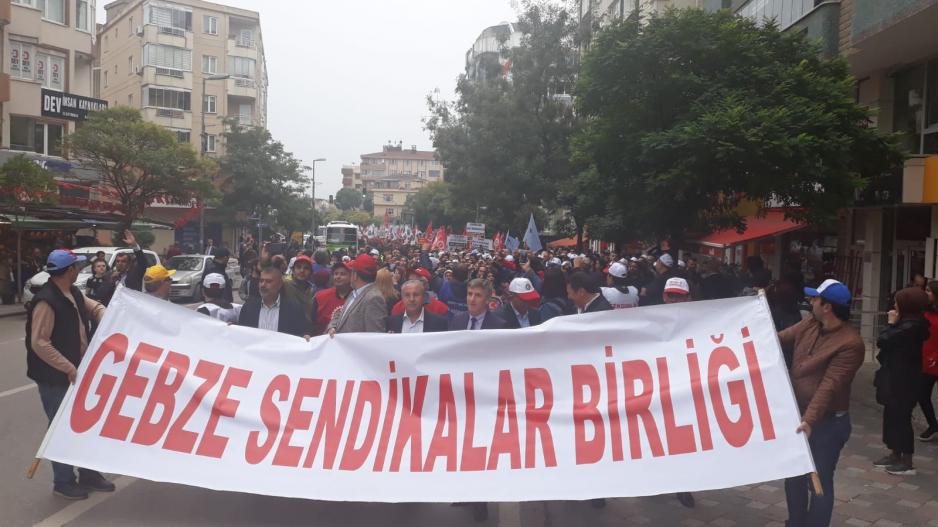 Gebze Sendikalar Birliği’nin çağrısı ile yüzlerce işçi Gebze Kent Meydanı’na yürüyerek ekonomik krizin faturasının işçi sınıfına kesilmesine karşı çıktı. Eylemin en önemli yönü, farklı konfederasyonlardan sendikalara üye işçilerin omuz omuza meydana çıkmasıydı. Türk-İş’e bağlı Petrol-İş sendikası, DİSK’e bağlı Birleşik Metal-İş, Nakliyat-İş ve Lastik-İş sendikaları ve Hak-İş’e bağlı Çelik-İş sendikası üyesi işçiler hep bir ağızdan “kurtuluş yok tek başına ya hep beraber ya hiçbirimiz” sloganları attılar.