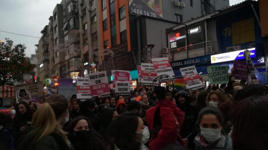 İzmir’de “Eşit, özgür, sömürüsüz bir dünya için isyandayız” diyen kadınlar barikatları aşarak yürüdü