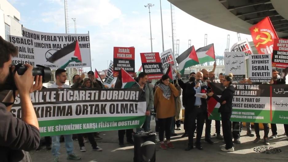 • Emperyalizme ve Siyonizme Karşı Filistin Dostları’ndan İsrail’e mal taşıyan gemilere karşı eylem!