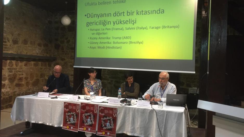 17 Mayıs Cuma günü Kocaeli’de, Mimarlar Odası Tarihi Bina’da Eğitim Sen Kocaeli Şubesi, Mimarlar Odası Kocaeli Şubesi ve Makine Mühendisleri Odası Kocaeli Şubesi’nin düzenleyicisi oldukları “Hukuk ve Devlet Teorisi” başlıklı Uluslararası Taner Yelkenci Sempozyumu gerçekleştirildi. Sempozyumun ilk gününde konuşmacı olarak Devrimci İşçi Partisi Genel Başkanı Sungur Savran da katıldı. Etkinlik 2013 yılında genç yaşta kaybettiğimiz değerli Marksist felsefeci Taner Yelkenci anılarak başladı ve açılış konuşmalarının ardından “Devletin Krizi ve Kritiği” başlıklı ilk oturuma geçildi.