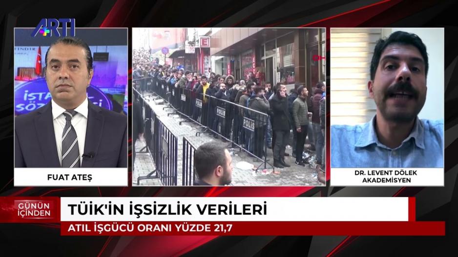 • Erdoğan "ne işsizliği ya!" derken rakamlar tersini söylüyor. Levent Dölek Artı TV'de değerlendirdi.