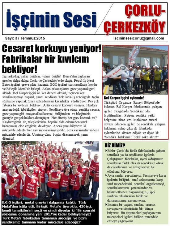 İşçinin Sesi Çorlu Çerkezköy Sayı 3