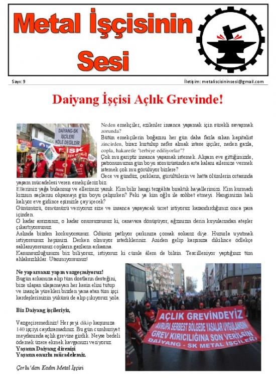 Metal İşçisinin Sesi Sayı 9 İNDİR