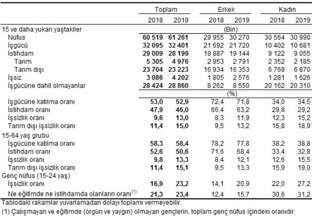 TÜİK’in açıkladığı istatistikler işsizlikteki vahim tablonun sürdüğünü gösteriyor. Mevsim etkisinden arındırılmış işsizlik oranı yüzde 13,8 ve işsiz sayısı 4 milyon 487 bin olarak açıklanırken DİSK, geniş tanımlı yani gerçek işsiz sayısının 7 milyona ulaştığını açıkladı. Genç işsizliği yüzde 25’in üzerinde ve her dört gençten bir işsiz. 2 milyon 720 bin genç ne eğitim öğrenim görüyor ne de bir yerde çalışıyor.