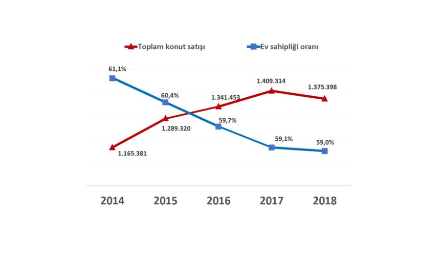 Evler hasarlı, insanlar korkuyor. Ve tüm bunlar bir konut bolluğu içerisinde yaşanıyor. Ev bol, her taraf yeni inşaatlarla dolu ama içinde oturabilmek için para yok. TÜİK’in istatistiklerine göre 2014’ten 2018’e konut satışları toplamda yüzde 18 artmış, ortalama her sene 1 milyon 300 bin konut satılmış, bunların ortalama 602 bin tanesi yeni yapılmış evlerin ilk el satışları. Bu kadar ev satıldığına göre halkın ev sahipliği oranının artması, insanlarımızın kiradan çıkıp kendi evlerine geçmesi gerekir değil mi? Hayır, gidişat tam tersine. Halkın ev sahipliği oranı aynı dönemde yüzde 61,1’den yüzde 59’a düşmüş. Yani emlak zenginleri daha zengin olurken emekçi halk kiraya daha fazla mahkûm olmuş.