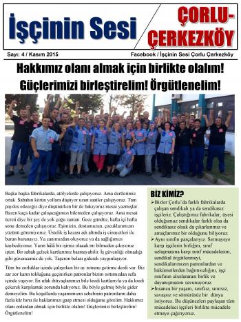 İşçinin Sesi Çorlu Çerkezköy Sayı 4