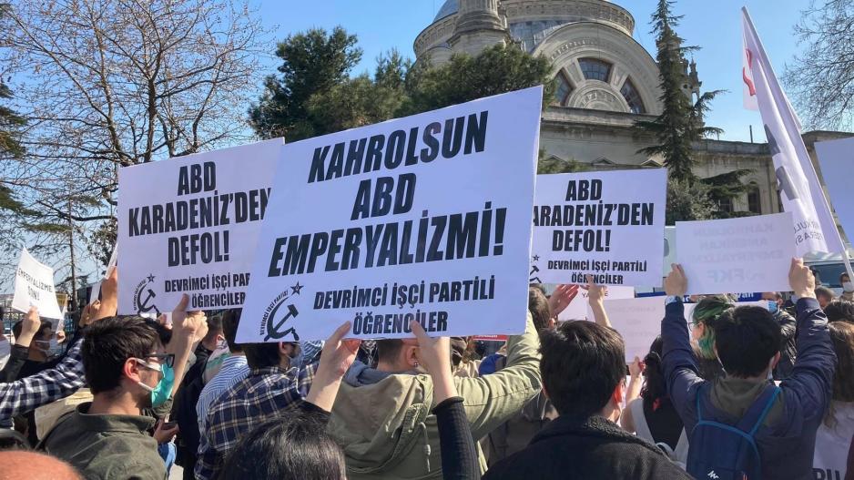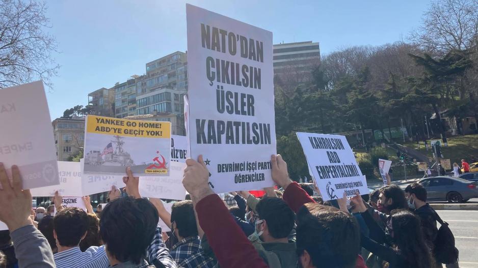 14-15 Nisan tarihlerinde ABD’nin Karadeniz’de emperyalist kuşatmayı arttırmak üzere boğazlardan geçirmeyi planladığı savaş gemilerini gençlik örgütleri Dolmabahçe’de protesto etti. Gençlik örgütlerinin, anti-emperyalist mücadeleyi bir kez daha yükselttiği eyleme Devrimci İşçi Partili Öğrenciler de “NATO’dan çıkılsın, üsler kapatılsın!”, “Kahrolsun Amerikan emperyalizmi!”, “ABD Karadeniz’den defol!” yazılı dövizlerle katıldı.