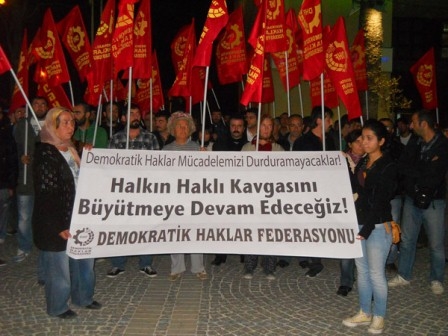 13 Kasım tarihinde İstanbul, İzmir, Samsun, Dersim dahil birçok ilde Demokratik Haklar Derneklerine yapılan baskın ve gözaltılar, Demokratik Haklar Federasyonu öncülüğünde İzmir’de protesto edildi. 15 Kasım saat 18:00’de Konak eski Sümerbank önünde birçok kurumun katılımıyla bir basın açıklaması yapıldı.