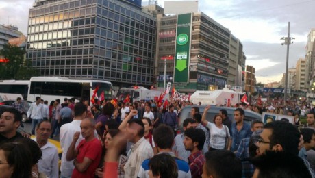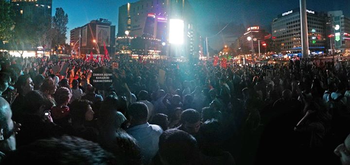 Sivas Madımak’ta katledilenleri anmak için tertiplenen miting akşam 5’te Sıhhiye Toros Sokak’tan harekete geçen yürüyüş kolunun Kolej Meydanı’na girmesiyle başladı. Miting geçtiğimiz yıllara oranla daha kalabalık ve canlıydı. 2 Temmuz’da katledilenlere dair sloganlar atıldı fakat bir aydır sürmekte olan ve hala tam olarak devletin kontrol altına alamadığı isyana dair sloganlar da sıkça tekrarlandı. Genel olarak sıklıkla atılan “Sivas’ın ışığı sönmeyecek” “Katil devlet hesap verecek” “Katillerden hesabı emekçiler soracak” “Ethem Yoldaş ölümsüzdür” “Bu daha başlangıç mücadeleye devam” “Diren Lice Ankara seninle” sloganlarının yanı sıra KESK kortejinde Tayyip Erdoğan’ın yol arkadaşı Mısır Devlet Başkanı Muhammed Mursi aleyhine ve Tahrir başta olmak üzere tüm Mısır’da protestolar düzenleyen halkla dayanışma içinde sloganlar da atıldı. Kamu emekçileri “Mursi istifa” “Tayyip sonun Mübarek olsun” “Taksim Tahrir olacak emekçiler kazanacak” sloganlarıyla Mısır halkının mücadelesini selamladılar. Ayrıca Devrimci İşçi Partisi militanları alanda Gerçek gazetesinin isyan üzerine çıkardığı özel sayıyı dağıttılar. Yüzlerce gazete birkaç dakika içerisinde bitti.