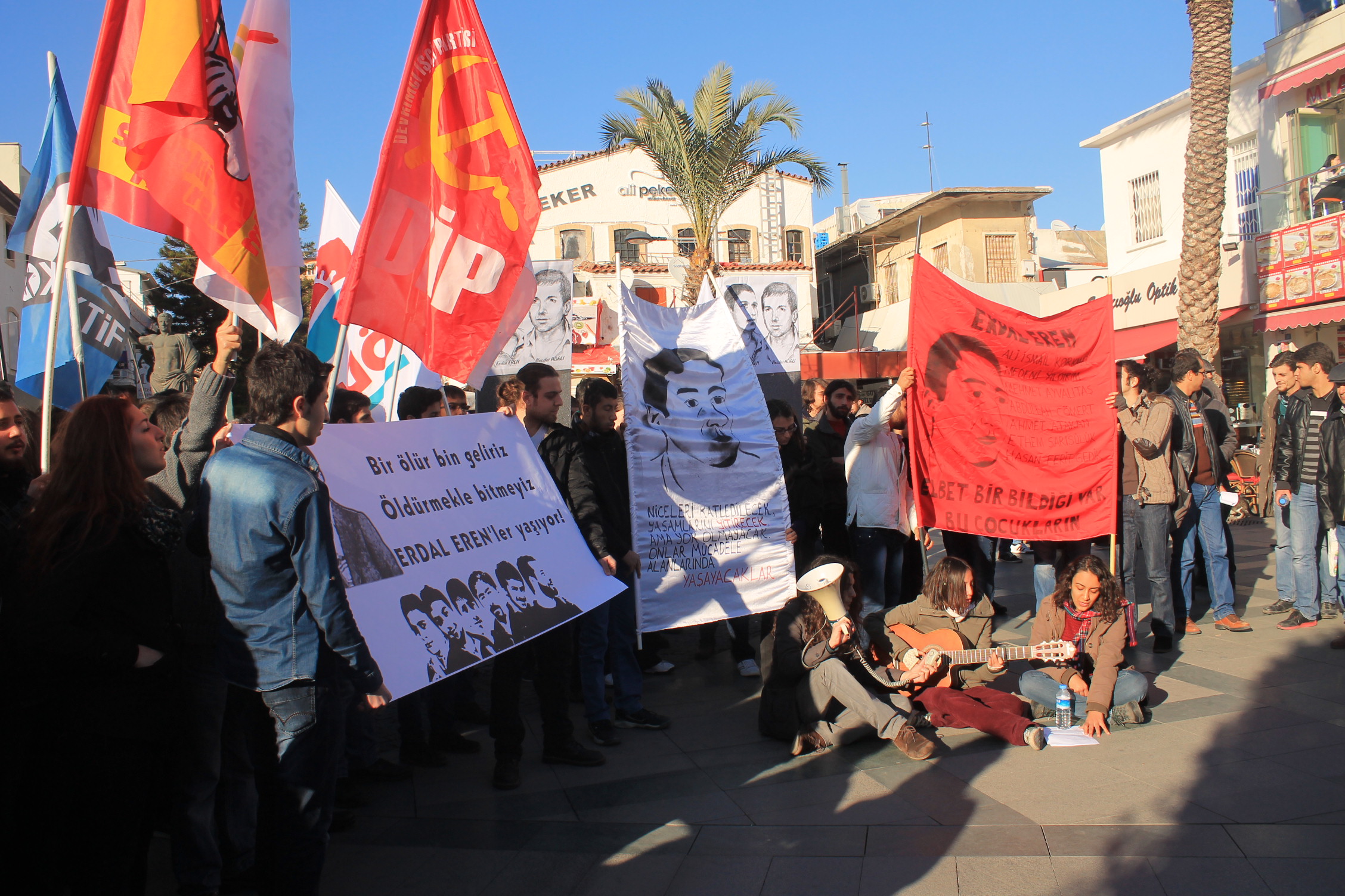 Attalos Heykeli önünde gerçekleştirilen basın açıklamasında; Erdal Eren’in, burjuva gericiliğine karşı, işçi sınıfının saflarında mücadele eden bir genç olduğu için katledildiği vurgusu yapıldı.