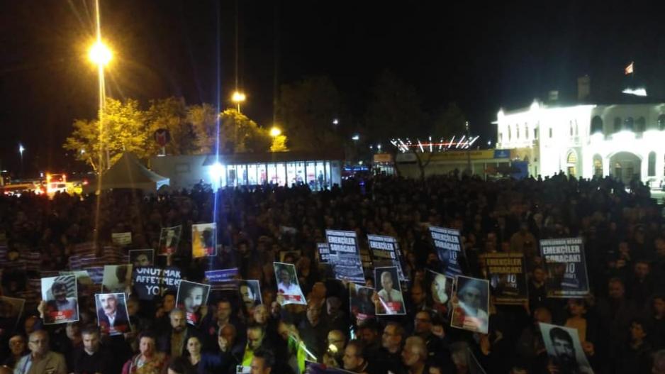 10 Ekim katliamının yıldönümünde emekçiler pek çok alanda bir araya geldi ve katliamın hesabını sordu. Tüm eylemlerde 10 katliamı davasının sulandırıldığı ve devlet içindeki sorumluların itina ile korunduğu vurgusu yapıldı. Devlet yetkilileri 10 Ekim davasından ayrı tutulsa da iktidar anmalara saldırarak katliamın siyasi sorumluluğunu üstlenmeye devam etti. 10 Ekim mitinginde katledilen insanların üzerine gaz bombaları atarak saldıranlar, yitirdiklerini anmak isteyen emekçilerin önüne barikatlar kurdu, saldırdı, gözaltına aldı. Ankara’da anma sabah saatlerinde polis saldırısıyla başlarken Van ve Mersin’de gözaltılar yaşandı. Anmaya izin verilen yerlerde ise emekçiler polis ablukası altına alındı. Yine de tüm meydanlarda emekçiler ve gençler 10 Ekim şehitlerini unutmadı ve sorumlu devlet görevlilerinin yargılanması talebini yükseltti.