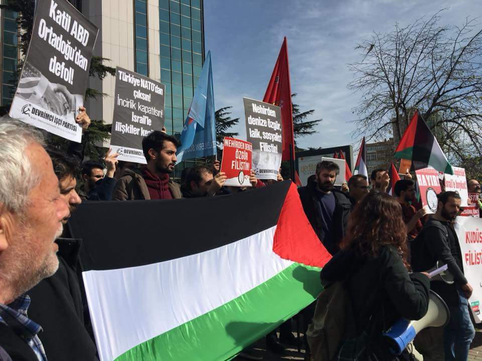 BDS Türkiye’nin Trump’ın Kudüs kararının ardından İstanbul’da başlattığı anti-emperyalist, anti-Siyonist Kudüs Nöbetleri’nin altıncısı ve sonuncusu31 Mart cumartesi günü Levent’teki İsrail konsolosluğu önünde gerçekleşti. Eylemde Siyonist İsrail’in bir gün önceden başlayarak Filistin halkının Büyük Dönüş Yürüyüşü’ne yaptığı saldırı ve yürüyüşçüleri katletmesi lanetlendi.