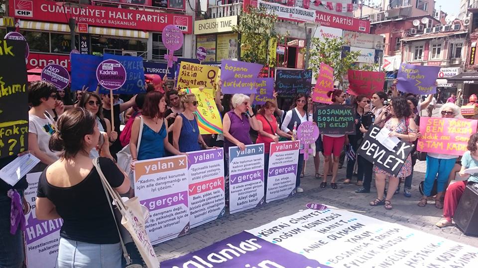 Mecliste kurulan Boşanma Komisyonu’nun kadın düşmanı raporlarına karşı Kadın Cinayetlerine Karşı Acil Önlem Grubu’nun çağrısıyla 18 Haziran Cumartesi günü Beşiktaş’ta kadınlar bir araya geldi.