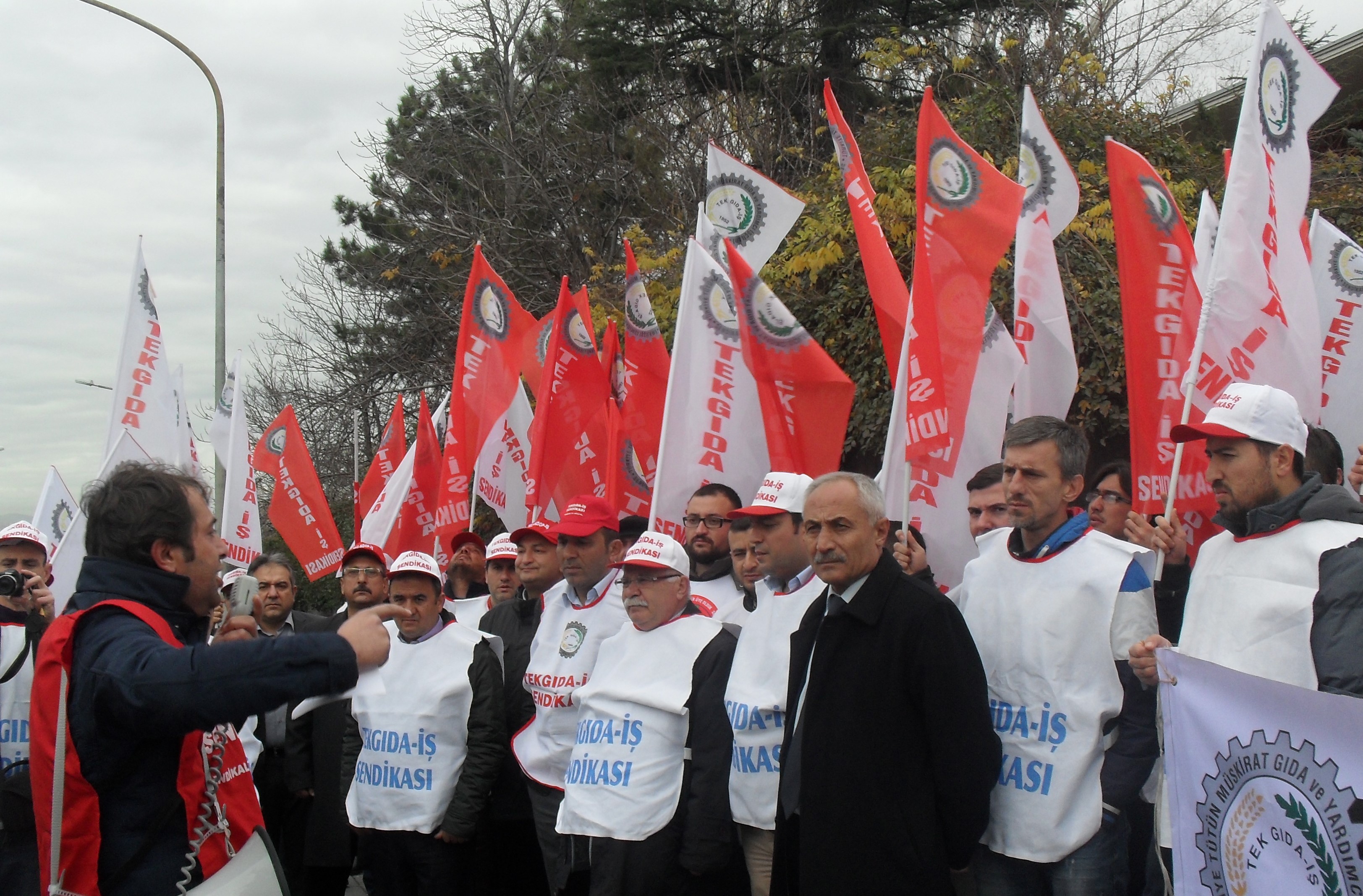 Basın açıklamasında söz alan Türk-İş temsilcisi ise direnişteki işçilere bugün destek vermeyenlerin yarın haklarını aradıklarında desteksiz kalacaklarını, bir ve birlikte olduklarını, direnen Nestle işçilerine Türk İş olarak her türlü desteği vereceklerini ifade etti. Ardından söz alan sendika teşkilatlandırma sekreteri İbrahim Önem, dünya devi Nestle Gıda'nın işçi kıyımına devam ettiğini, dünyanın her yerinde çalışanlarını sömüren Nestle Gıda'nın maskesinin düştüğünü, ILO sözleşmesinin ve anayasal hukukun yok sayılarak 28 işçinin işine son verildiğini belirtti. Sendika sözcülerinin konuşmalarına sık sık ' İşimizi geri istiyoruz!', 'Atılan işçiler geri alınsın!', 'Yaşasın onurlu mücadelemiz!', 'İş ekmek yoksa barış da yok!', 'Susma sustukça sıra sana gelecek!', 'Birleşe birleşe kazanacağız!' sloganları eşlik etti.