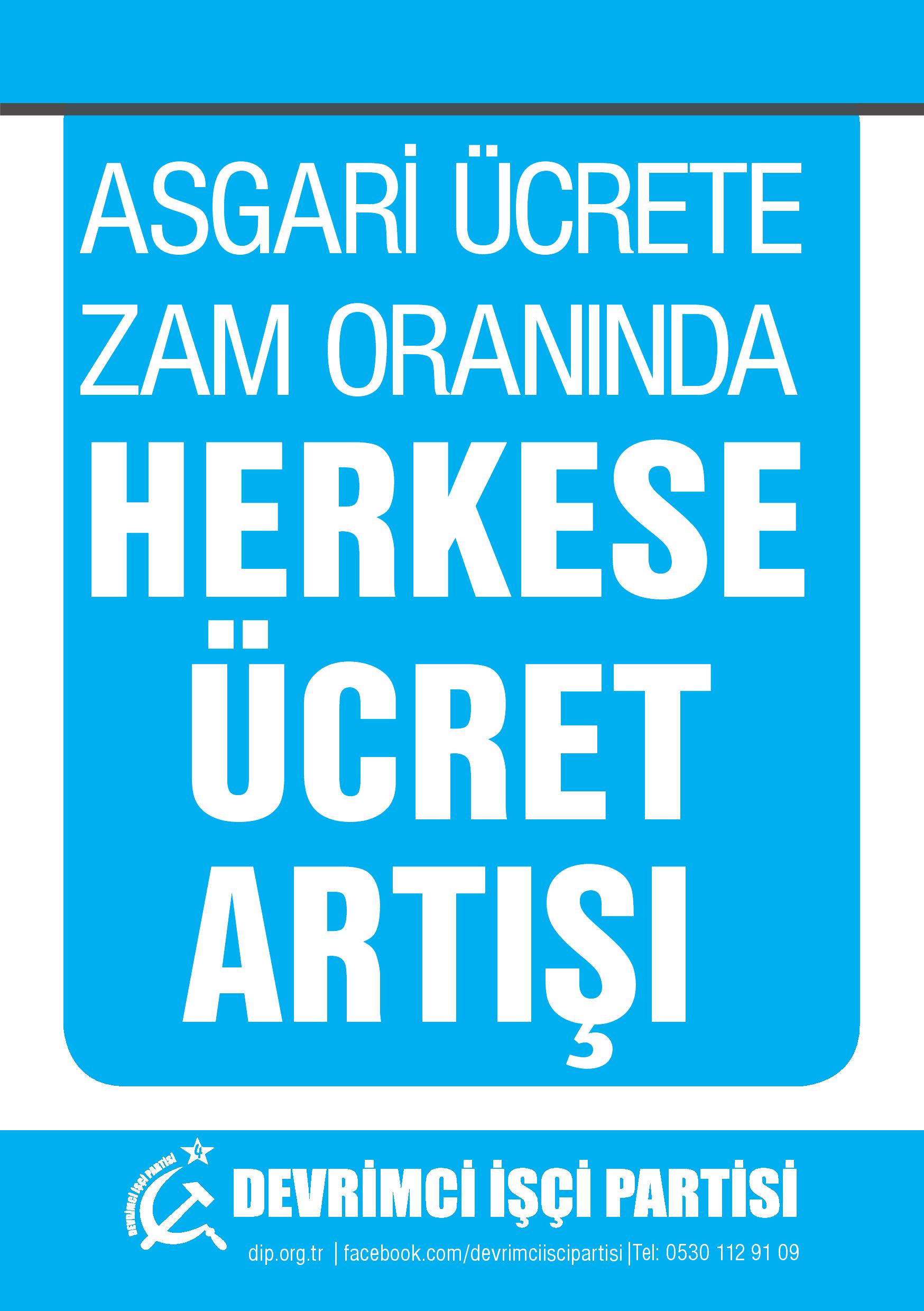 Tüm gün çalışıp didinen, alınteri döken işçileriz! Ne havadan para peşindeyiz ne de sadaka isteriz. İnsan gibi çalışıyoruz, insan gibi yaşamak istiyoruz.Açlık sınırının altında olan asgari ücretin lütuf olduğunu kabul etmiyoruz. Asgari ücret geçimlik ücret seviyesine yükseltilsin! Derhal, gecikmeksizin asgari ücrete yapılan zam oranında tüm işçilere zam yapılsın!