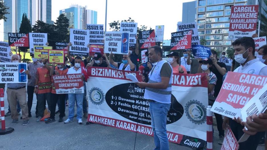 Cargill işçilerinin sendikalaştıkları için işten atılmış oldukları hem yerel mahkemede hem de istinafta tescillenmiş durumda. Mahkeme kararlarına uymayan ve işçilere iş başı yaptırmamakta direten Cargill’in bu tutumuna karşı işçiler direnmeye devam ediyor. Özellikle tazminat karşılığı anayasal hakları olan sendika üyeliğinden ve iş başı yapma talebinden asla vazgeçmiyorlar. 7 Eylül 2020 itibariyle 874. Gününe giren direniş hafta içi günlerinde Cargill’in Ataşehir’de bulunan Palaidum Tower önünde devam ediyor. İşçiler geceleri plazanın önünde ve dışarda kalıyorlar. Her hafta işçilerin kaldığı yere yapay bitkiler yerleştiren, plazanın giriş çıkış kapısını değiştiren şirket işçileri yıldıramıyor. Cargill işçileri tüm işçi sınıfının sendikalaşma hakkı ve iş güvencesi için bir sınıf mücadelesi verdiklerinin bilinciyle direnmeye devam ediyor.