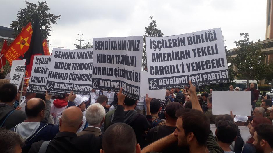 İşçiler işe iade davasını kazandığı, mahkeme sendikal tazminata hükmettiği halde Cargill patronu işçileri işe başlatmamakta direniyor. Ancak 526 günlük direniş özellikle de işçilerin gece şirketin önünde yattığı, gündüz konuşmalarla, sloganlarla, dayanışma ziyaretleri ve halaylarla direnişin sürdüğü son 36 gün işçilerin asla yılmayacağını dosta düşmana gösterdi. İşçiler bu kararlılıklarını “biz bu yola baş koyduk geri dönüş yok” sloganlarıyla eylem anında bir kez daha haykırdılar.