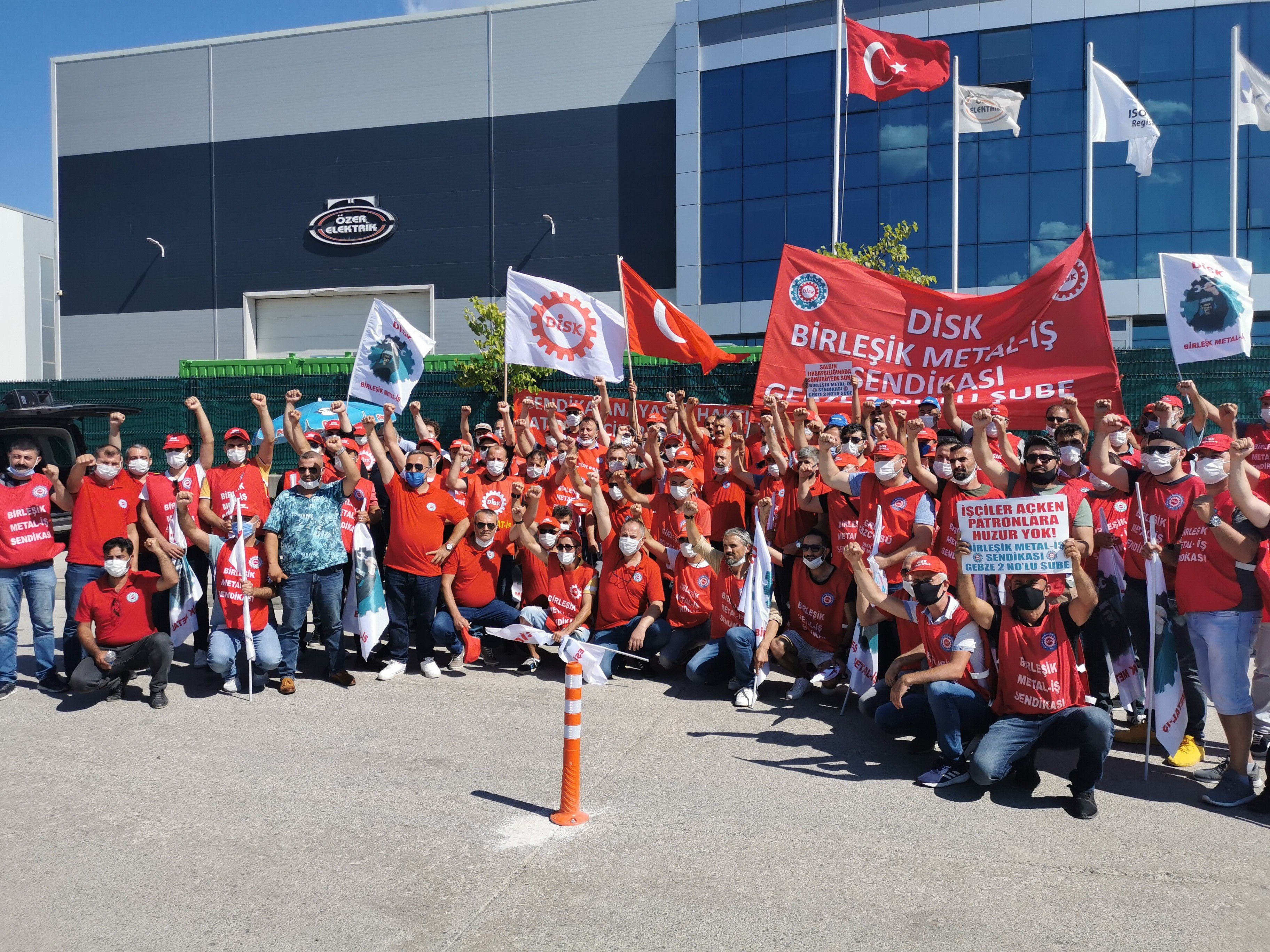 Birleşik Metal-İş sendikası Gebze Dilovası’nda bulunan Özer Elektrik fabrikasının önünde sendikalaştıkları için işten atılan 10 işçinin iadesi ve sendikal hakların tanınması için eylem yaptı. Özer Elektrik patronu 27 Temmuz günü Birleşik Metal-İş’in işyerinde çoğunluğu sağlayarak yetki başvurusu yapması üzerine 10 işçiyi işten atmıştı. 25/2. Maddeden ahlak ve iyi niyet kurallarına aykırı davrandıkları iftirasını atarak tazminatsız olarak işçileri işten atan patron, sözüm ona işten atmanın yasaklanması olarak sunulan uygulamanın gerçek yüzünü bir kez daha göstermiş oldu. Patron hem işçilerin anayasal haklarını hiçe sayıp hem de “işten atma yasağı”nı delerken arkasında devletin tam bir desteğini buldu. İşten atmaların ardından Jandarma fabrikaya yasaları çiğneyen patrona karşı değil hakkını arayan işçileri engellemek üzere gelmiş ve bazı işçilerle sendikacıları göz altına almıştı.