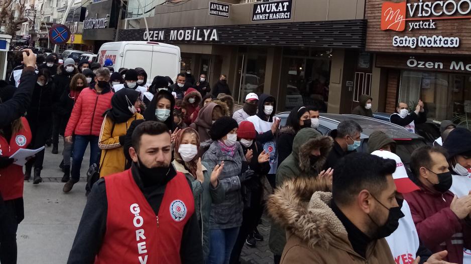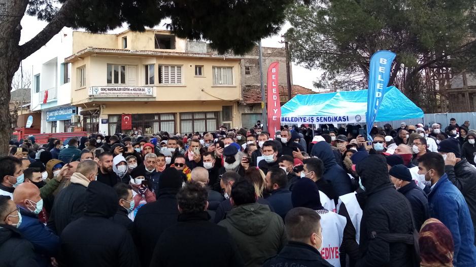Geçtiğimiz aylarda İzmir Menemen Belediye Başkanı Serdar Aksoy zimmet ve irtikap (görevi kötüye kullanma) suçundan tutuklanmıştı. Yerine kura ile tayin edilen AKP’li başkanvekili Aydın Pehlivan, yönetim yetkisi CHP’li Deniz Karakurt’ta bulunan belediyeye ait Meta-Su ve Menaş şirketlerinin yönetiminin kendisine devredilmesini istedi. Bu teklif Şubat ayında yapılan meclis toplantısında gündeme getirildi ve İyi Parti-CHP’nin oy çokluğuyla reddedildi. Şirket yönetiminin kendisine verilmemesi üzerine başkanvekili Aydın Pehlivan, 666’sı Meta-Su, 17’si Metaş şirketlerinde çalışan yaklaşık 670 işçiye gece yarısı attığı bir mesaj ile işbaşı yapmamaları talimatını verdi. Belediye-İş sendikasında örgütlü işçiler bunun üzerine eyleme geçti. Belediye işçileri, 15 Şubat Pazartesi günü Menemen Cumhuriyet Meydanı’ndan belediye binasının önüne yürüyüş gerçekleştirdi, basın açıklamasıyla taleplerini dile getirdi. Menemen Belediyesi işçileri, belediyede AKP ve CHP’nin yürüttüğü koltuk kavgasının mağduru ve tarafı hâline getirildi. Bu kavgada bir taraf olmayan ve ekmek mücadelesi veren işçiler bir an önce bu belirsizliğin son bulmasını ve işlerine geri dönmek istiyor.