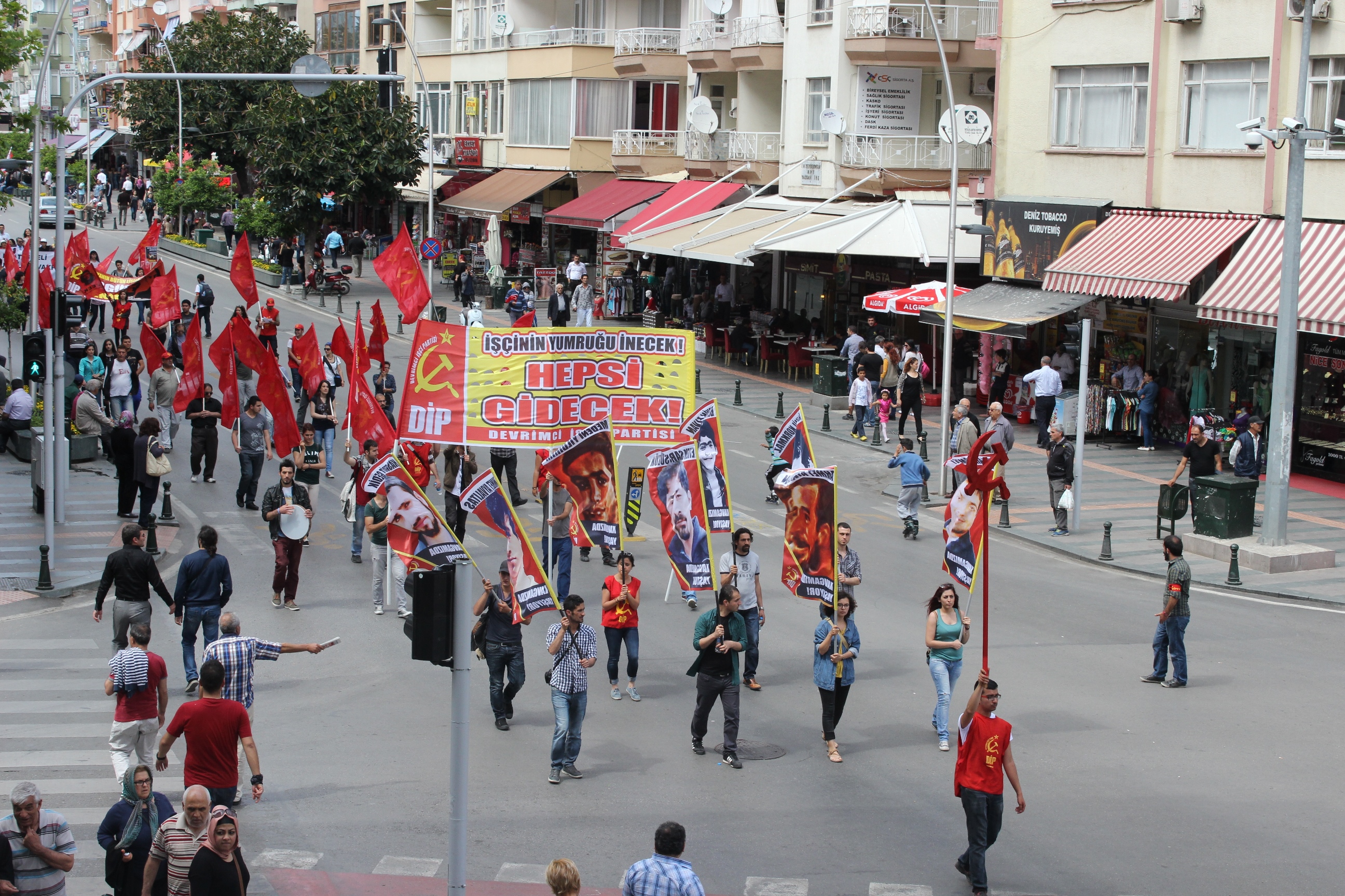 Antalya’da 2014 1 Mayıs’ı KESK, DİSK ve TMMOB’un çağrısıyla derneklerin ve siyasi partilerin katılımıyla yıllar sonra ilk kez Cumhuriyet Meydanı’nda yapıldı.
