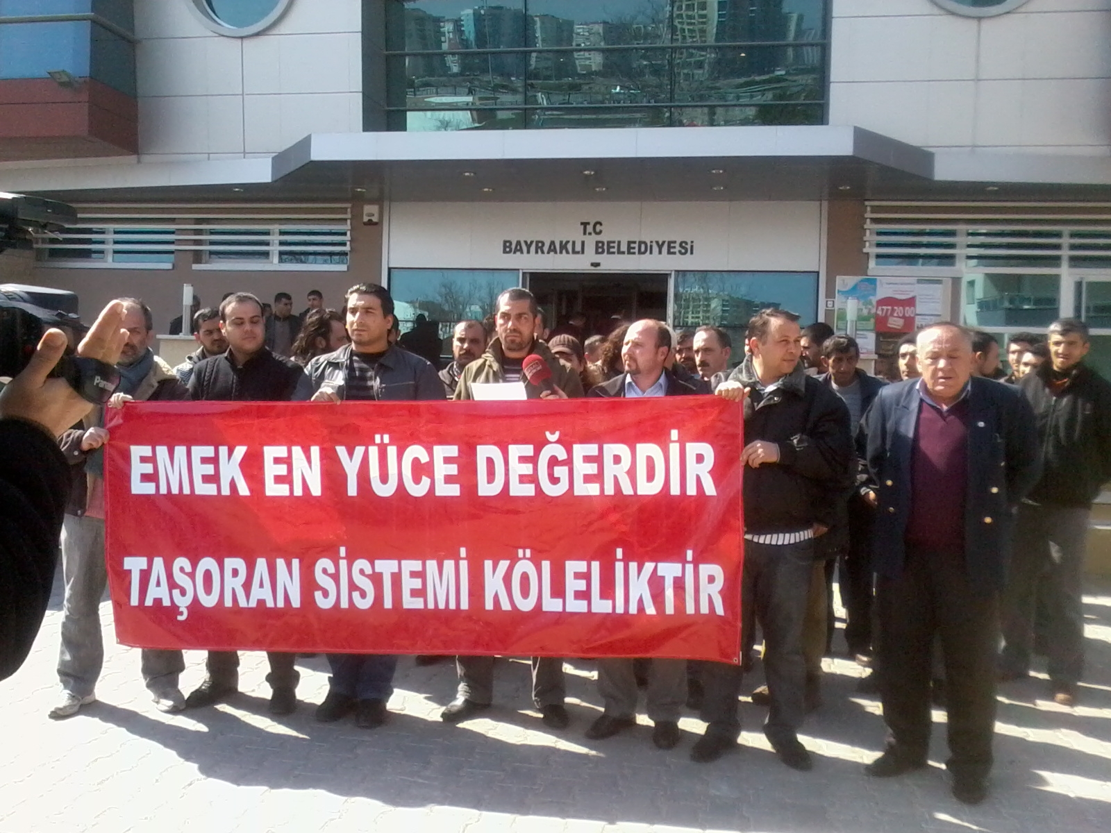 Buca ve Konak belediyesi taşeron işçilerinden sonra Bayraklı belediyesi taşeron işçileri de direniş bayrağını yükseltiyor.