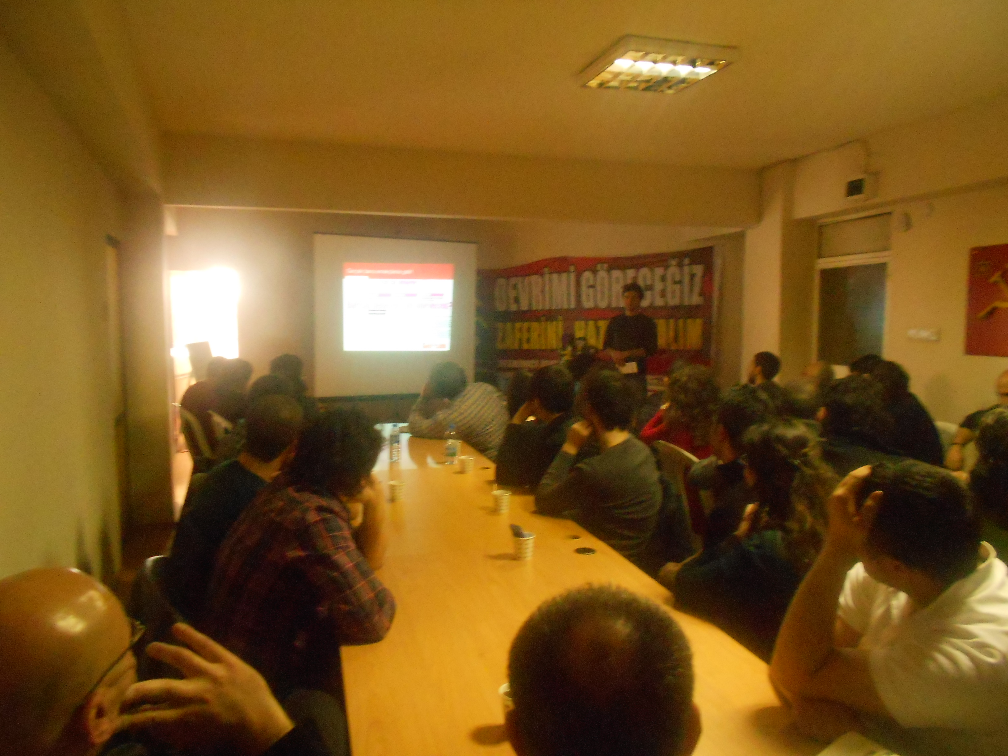 Lüleburgaz'daki Sendikal Güç Birliği mitingi hakkında konuşmalar yapıldı. Metal işçisi bir yoldaşımız miting hakkında görüşlerini paylaştı. Mitingin, Trakya'da yapılan nadir kitlesel mitinglerden biri olmasına rağmen kitlelerin, sendika başkanlarının uzun konuşmalarından sıkıldıklarını ve alanı erken terk ettikleri vurgulandı. Kıbrıs'lı bir yoldaşımız, gerek kuzeyde gerekse güneyde yaşanan kitle hareketleri hakkında bir konuşma yaptı.