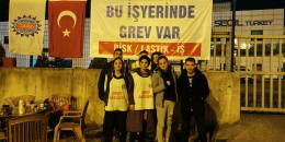 Lastik-İş’e bağlı işçiler emekçi halka yol gösteriyor. Seçimlerden sonra karalar bağlayanların aksine mücadele edenlerin, grev yaparak bileğinin gücüyle hakkını alabildiğini gösteriyor. Mücadelelerinden geri adım atmadan grevine sahip çıkan işçiler halaylarını ve sloganlarını eksik etmiyor, olumsuz hava şartlarına rağmen alanı terketmiyor. Colgate-Palmolive işçileri üretimden gelen güçleriyle, grevle kazandı. Şimdi sıra Corning işçilerinde, grev halayını bir kez daha zafer halayına çevirmekte.