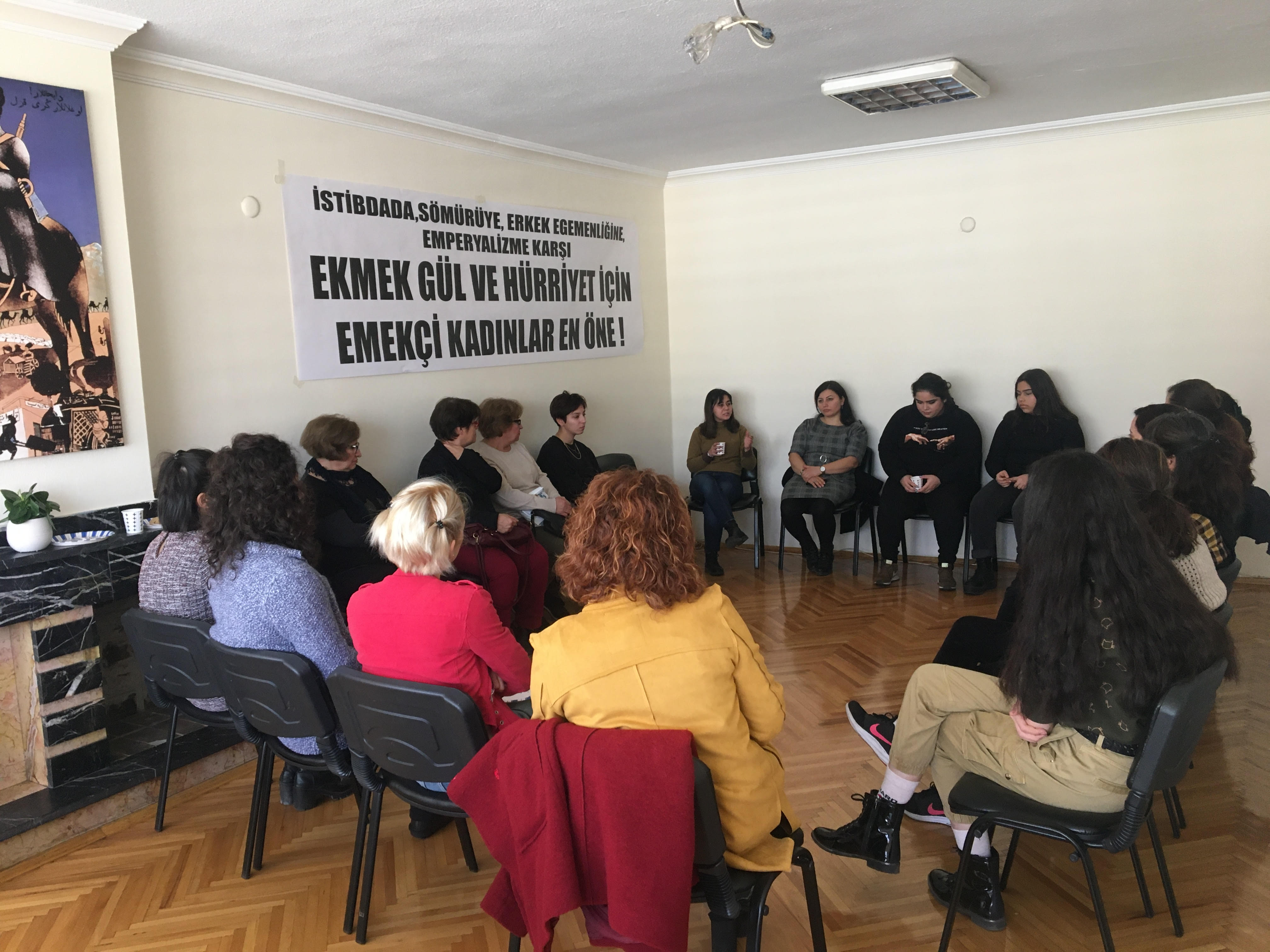 Ankara'da kadınlar "8 Mart'ta emekçi kadınlar en öne!" şiarlı toplantıda bir araya geldi