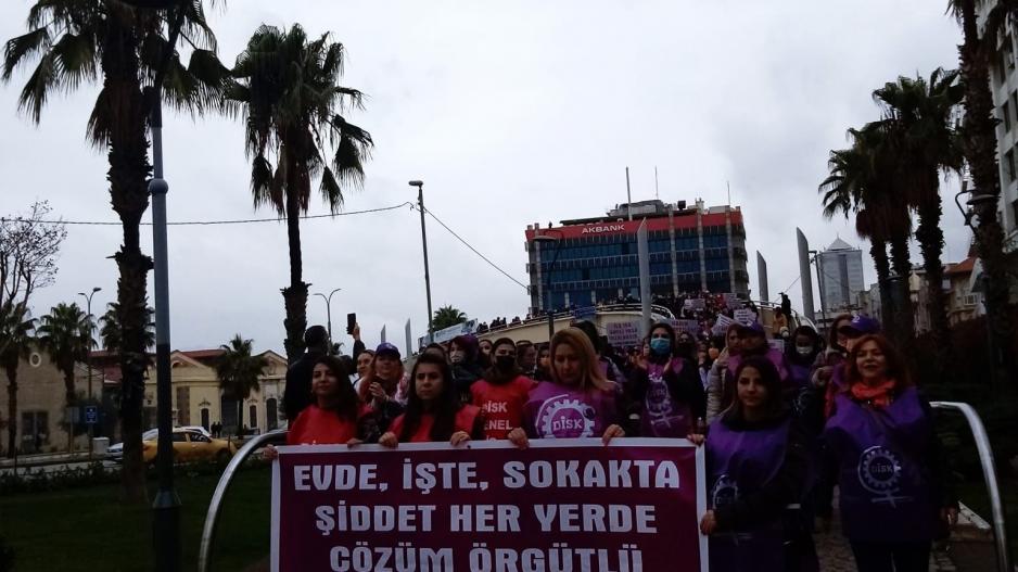 DİSK 25 Kasım faaliyetleri kapsamında ILO tarafından iş yerlerinde kadına yönelik şiddet, taciz ve ekonomik şiddeti önlemek amacıyla çıkarılan 190 sayılı sözleşmesinin Türkiye'de onaylanması ve etkin bir biçimde uygulanması için bir kampanya örgütledi. Çeşitli kentlerde “ILO 190 onaylansın!” “İstanbul Sözleşmesi’nden vazgeçmiyoruz!” sloganlarıyla eylemler düzenledi. Düzenlenen eylem ve etkinliklerde krizin, erkek egemen sistemin yükünü en çok çekenlerin kadınlar olduğu; ekonomik krizde, işsizlikte ilk gözden çıkarılanın, eşit iş yaptığı hâlde eşit ücret alamayan kesimin yine kadınlar olduğu ifade edildi. Erkek şiddetini körükleyen politikalara, artan ayrımcılığa, yoksullaşmaya karşı emekçi kadınların önde olacağı mücadele çağrısı yapıldı.