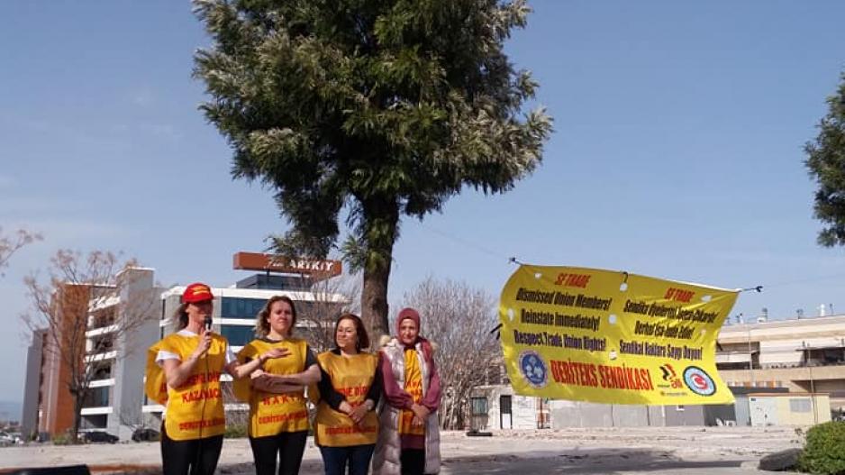 İzmir’de 8 Mart Dünya Emekçi Kadınlar Günü etkinlikleri, mücadelede en öne çıkan ve 140 gündür Gaziemir Serbest Bölge Girişi’nde direnişte olan 4 kadın işçiyi ziyaretle başladı.
