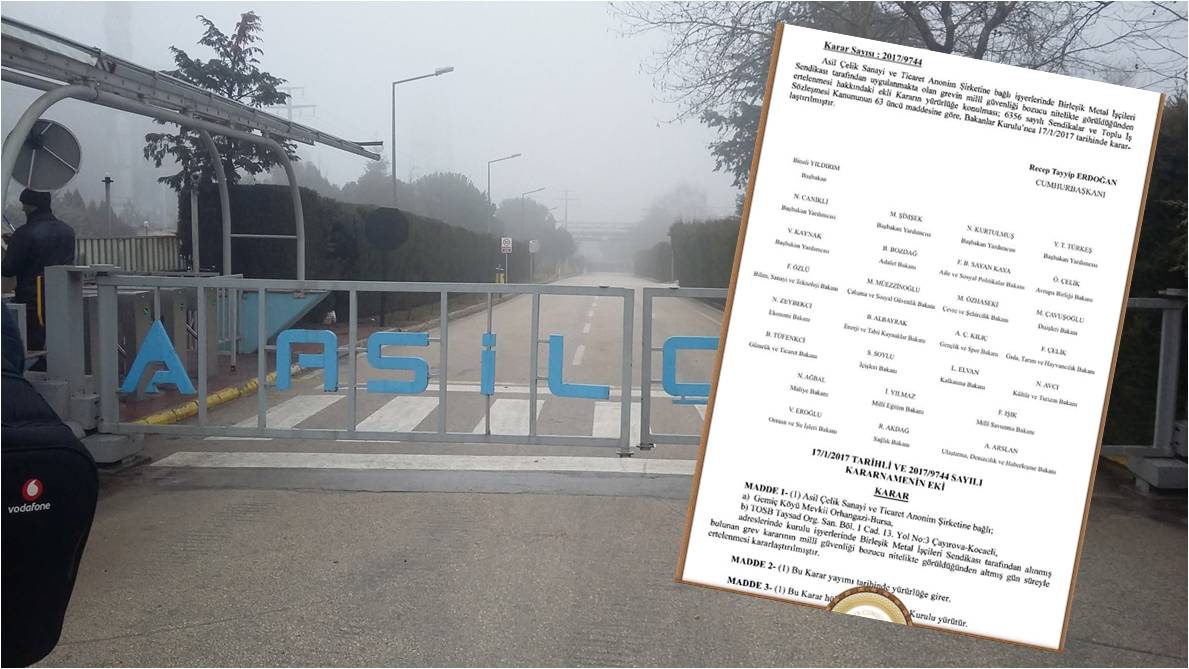 Asil Çelik'te Birleşik Metal İş sendikasının yürüttüğü toplu sözleşme sürecinde anlaşma sağlanamamıştı ve 18 Ocak'ta başlamak üzere grev kararı alınmıştı. Greve saatler kala Bakanlar Kurulu yayınladığı kararla Asil Çelik grevini yasakladı. Bakanlar Kurulu'nun gece yarısı toplandığına dair yine herhangi bir emare yok. Yine bir hayalet toplantıyla, telefonla alınan imzalarla işçilerin hak arama mücadelesi engellendi. Karar 60 gün süre ile erteleme biçiminde alınmışsa da bu süre sonunda sözleşme yüksek hakeme gideceği için grev fiilen yasaklanmış durumda.
