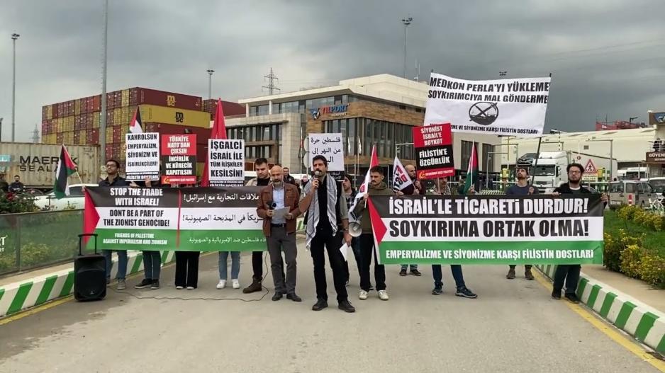 • Emperyalizme ve Siyonizme Karşı Filistin Dostları’ndan İsrail’e mal taşıyan gemilere karşı eylem!