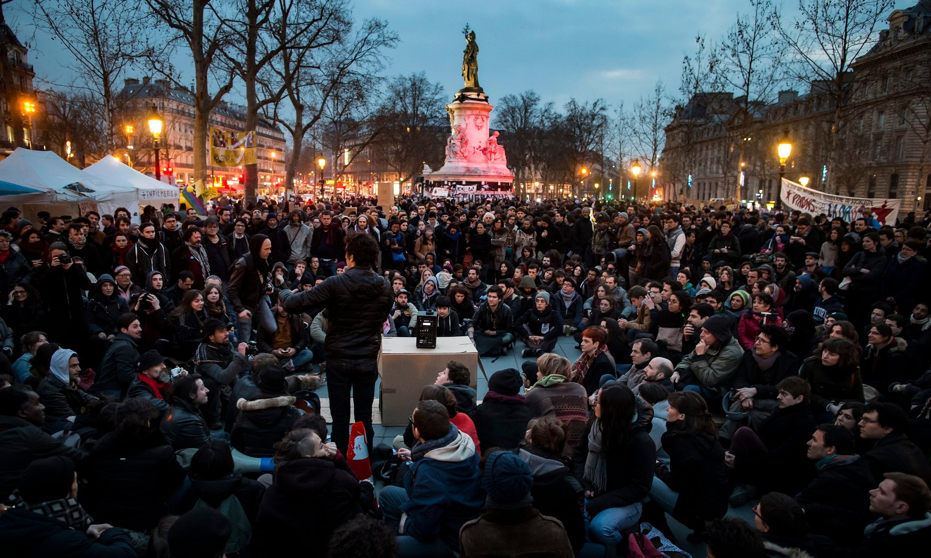 Burada eşitsiz ve bileşik gelişme yasasının devrimler ve halk hareketleri açısından nasıl etkili, hatta belirleyici olduğunu bir kez daha görüyoruz. Fransa’da işçi sınıfının dolaysız çıkarlarını ilgilendiren gelişmeler olduğunda büyük sendikal mücadeleler hep görülmüştür. Ama bu sefer, eylemler biraz kitleselleştiğinde derhal başka dinamikler doğuyor. Bunların en ilginci “#NuitDebout” hareketidir. “#AyaktaGeçirilenGece” olarak çevirebileceğimiz bu hareket, aynen daha önce İspanya’daki “Öfkeliler” hareketi gibi, Syndagma’daki işgal gibi, Gezi gibi, hatta ABD’deki Wall Street İşgali hareketi gibi, büyük ölçüde kendiliğinden ve büyük ölçüde sosyal medya ağından yararlanılarak örgütlenmiştir. Hedefi de Paris’te çok merkezi bir meydan olan ve tarihi bakımdan önem taşıyan République (Cumhuriyet) meydanı başta olmak üzere, halkın geceyi meydanlarda, eylem yaparak, tartışarak, slogan atarak, konserler dinleyerek geçirmesidir. Başka ülkelerde yaşanmış bir deneyim, şimdi başka deneyimlerden geçerek toplumsal mücadelelere gelen bir başka halk tarafından benimsenmektedir.