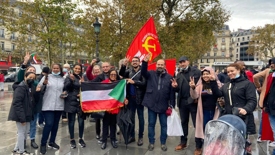 30 Ekim günü, Sudan’da “milyonların yürüyüşü” ile eş zamanlı olarak, Paris’in République Meydanı’nda, karşı devrimi yenmek için düzenlenen bir eylem gerçekleşti. Çok kısa sürede örgütlenmesine ve gün içinde bastıran yoğun yağmura rağmen eylem çok başarılı geçti. Fransız solunun hemen hemen hiç katılmadığı, ezici çoğunluğunu Sudanlı göçmenlerin oluşturduğu beş yüz kişilik kitle, 4 saat boyunca Paris’in en önemli meydanını Sudan devrimine destek sloganlarıyla inletti. Eylem boyunca neredeyse kesintisiz biçimde Arapça “yeskut, yeskut hükm-ül askerî” (yıkılsın, yıkılsın askeri rejim) sloganları atıldı; “savra, savra” (devrim, devrim) sloganlarıyla eşlik edilen marşlar söylendi.