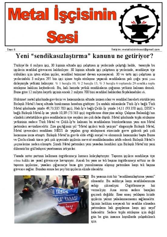 Metal İşçisinin Sesi Sayı 6 İNDİR