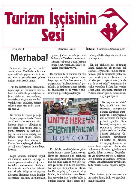 Turizm İşçisinin Sesi Sayı 1